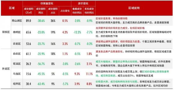 双核+白云市场份额占比八成,同比降幅低于贵阳整体大势,外延低位成交,价格基本触底