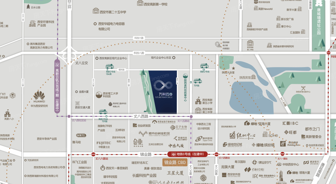 楼盘地址: [ 西安]- 高新陕西宾馆向西约700米(丈八西路与瞪羚路一路交汇处)