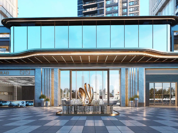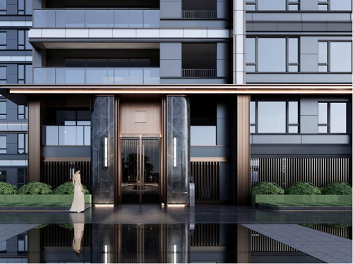 环岛式奢华水景之上的兰花雕塑,取形贵阳市花,与大气门庭完美融合;约30米宽的显赫门庭,超白玻璃幕的圆角匠艺搭配厚重饱满的幻影灰石材,气势磅礴的美学界面,散发着恢弘的建筑昭示感;公建化立面设计,经典米白+金融城鎏金配色,赋予城市新贵人群的先锋审美。