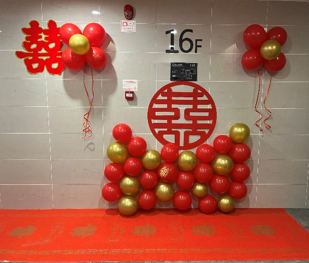 贵阳万科麓山小区有一对新人即将举行婚礼,万科物业管家“西芎”亲自上门为业主做婚庆服务,红色的装饰让业主家中更加喜庆热烈,梦幻多彩的气球浪漫满溢,装载着管家对新人的热情祝福,自此与这对夫妻成为无话不谈的朋友;