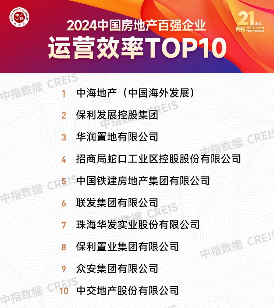 其中,综合实力方面,保利、中海地产及万科位列前三;规模性方面,保利、万科及华润置地位列前三;盈利性方面,华润置地、中海及保利位列前三;成长性方面,绿城、华润置地及招商局蛇口位列前三;稳健性方面,中海、中建及龙湖位列前三;融资能力方面,保利、华润置地及中海位列前三;运营效率方面,中海、保利及华润位列前三。