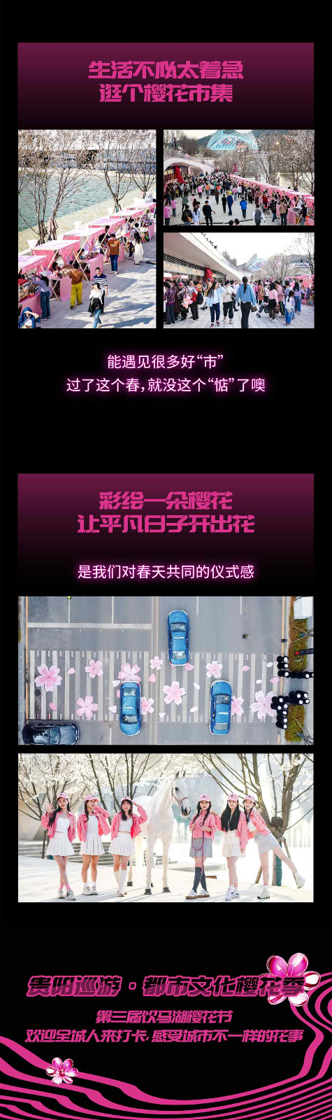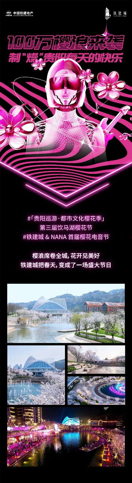 近日,「贵阳巡游·都市文化樱花季」铁建城&NANA首届樱花电音节开启。樱浪席卷全城,花开见美好,铁建城把春天,变成了一场盛大节日。