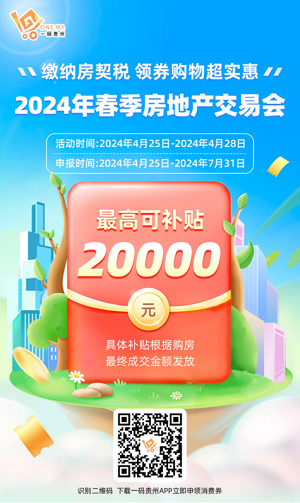 为抢抓国发〔2022〕2号文件赋予的政策机遇,助推稳地价、稳房价、稳预期的长效管理调控机制,为有置业需求的老百姓搭建切实可靠的一站式购房平台,扩大内需拉动经济发展,观山湖区政府主办“2024年观山湖区春季房交会暨消费节”并出台政府补贴政策,活动期间购买新住宅的消费者可获得最高2万元的消费券补贴,通过一码贵州app申领。