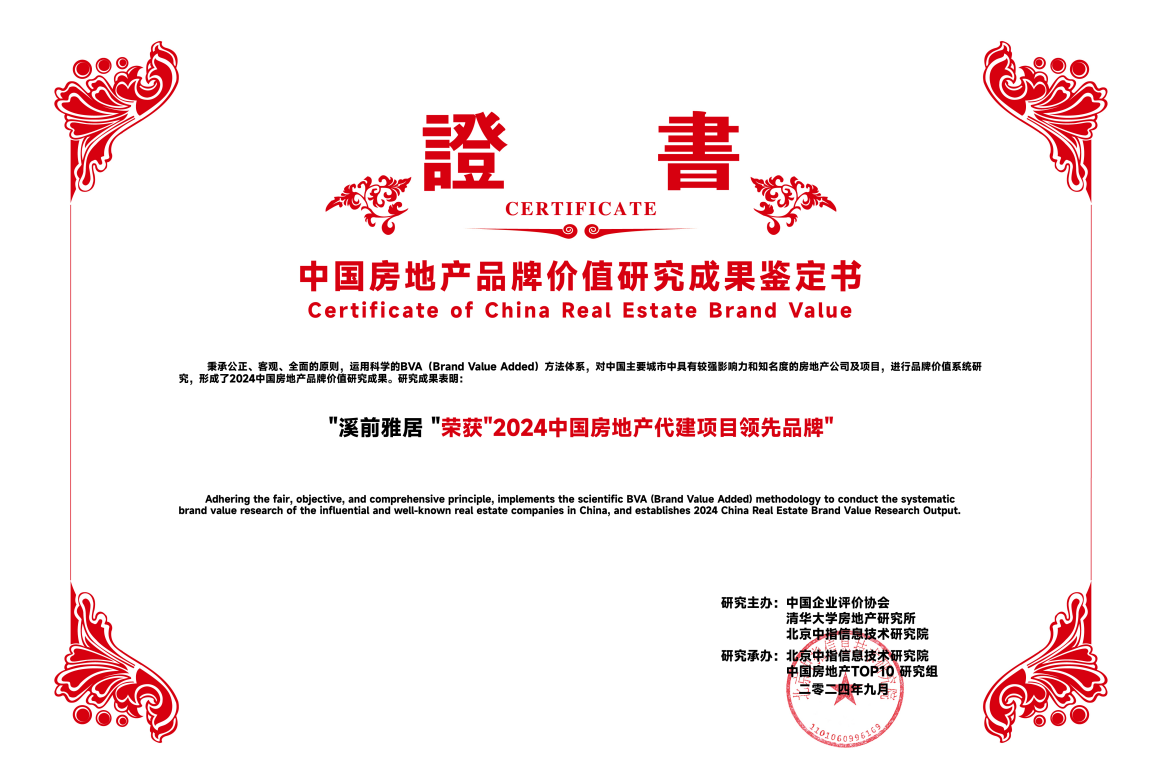 会议发布了2024中国房地产百强企业研究最新成果,旭辉建管凭借雄厚实力和在代建领域的突出表现,荣获“2024中国房地产代建领先品牌”、“2024中国房地产政府代建领先品牌”、此外溪前雅居项目荣获“2024中国房地产代建项目领先品牌”。