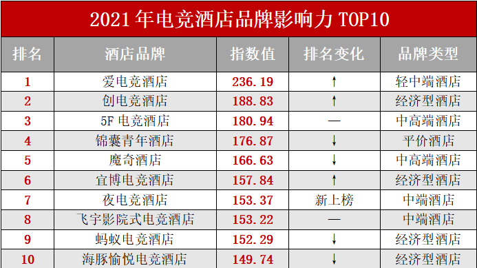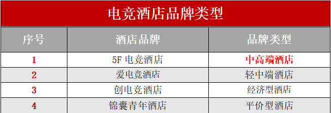 在品牌影响力排名靠前的几家电竞酒店中刚好分别占据了:轻中端酒店、经济型酒店、中高端酒店、平价酒店: