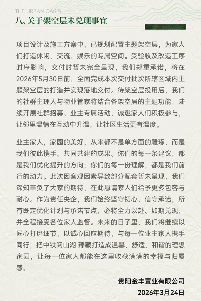 近日,中铁阅山湖臻藏项目通过官方公告及《致业主家人的一封家书》形式,对业主普遍关心的教育配套、园区绿化、交付标准等多方面问题进行了集中说明与承诺。