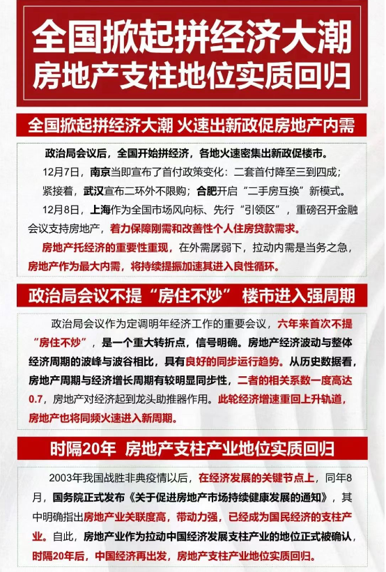 12月9日,知名产经媒体公众号XIN号发布关于全国掀起拼经济大潮的观察专题内容,并提出了“房地产支柱地位实质回归”之论断。