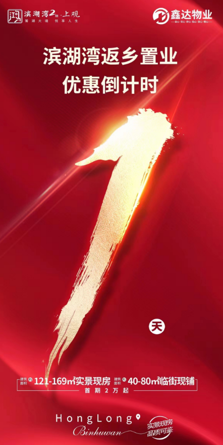 城楼网讯/1月31日,贵州毕节鸿隆滨湖湾对外发布宣传海报,称其2期上观实景现房首付两万返乡置业优惠倒计时1天。