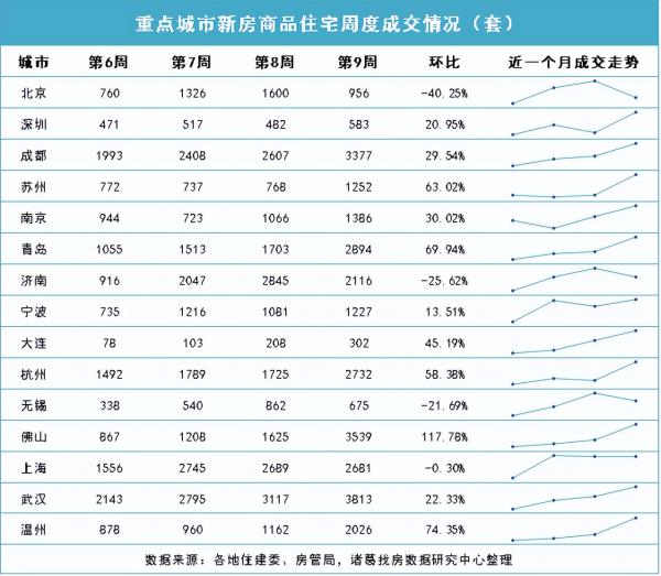 近日,诸葛研究院发布2023年第9周监测重点楼市成交周报。