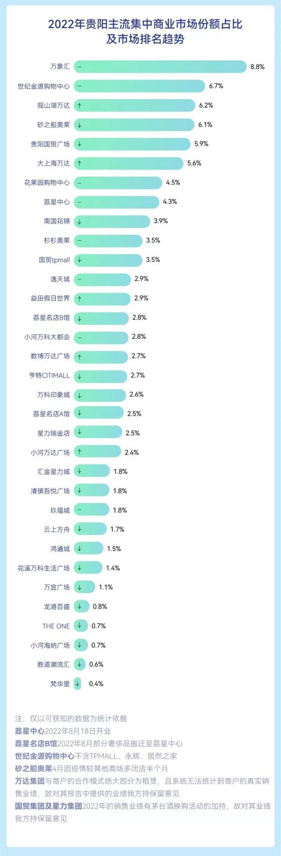 3月6日,瞬时泰团队发布第九届贵阳商业发展报告并公布了2022年贵阳集中商业市场排行榜单。