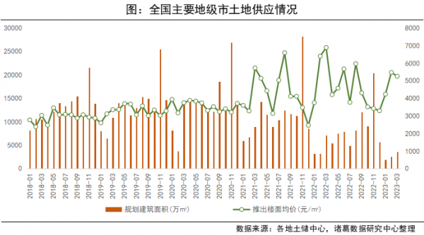 从3月单月土地供应来看,随着城市土地挂牌活动进一步增多,3月土地市场供应规模继续上升。据诸葛数据研究中心监测,全国主要地级市2023年3月供应土地503宗,供应规划建筑面积为3628.5万㎡,同比下降49.48%,环比上升44.44%;推出楼面均价为5255元/㎡,同比下跌23.51%,环比微跌4%。