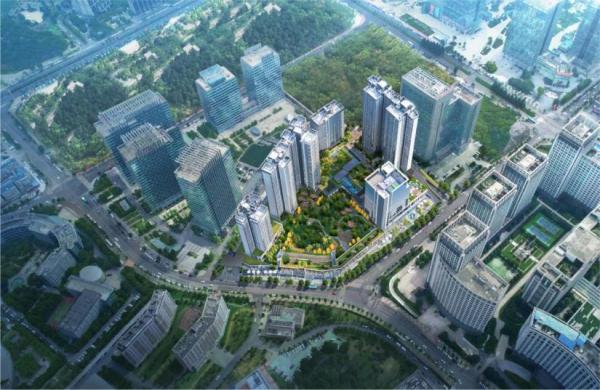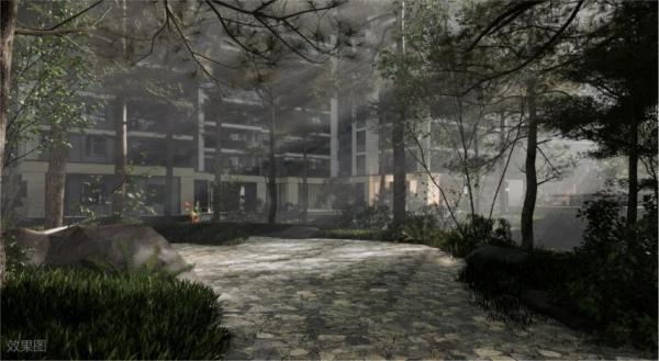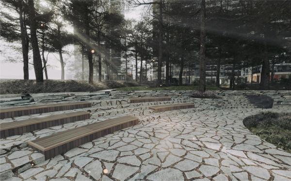 项目保留约3000m原始松林,在园林打造上,借助松林公园为墨引,渐进场地,探寻自然,回归本心强化“居住停于自然”之中的城市居住体验。