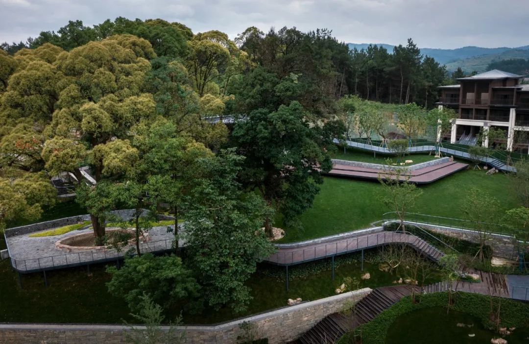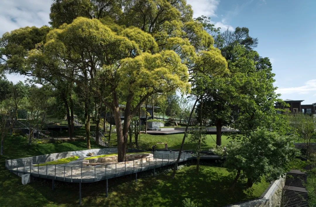 中铁国际生态城深知这片由两株百年古树守护的土地之珍贵,特邀中国园林设计翘楚——山水比德以两株古树为中心,打造近10亩古树园林示范区。并荣获2022美国缪斯设计奖(MuseDesignAward)金奖和2023BERLIN Design Awards 柏林设计奖银奖。