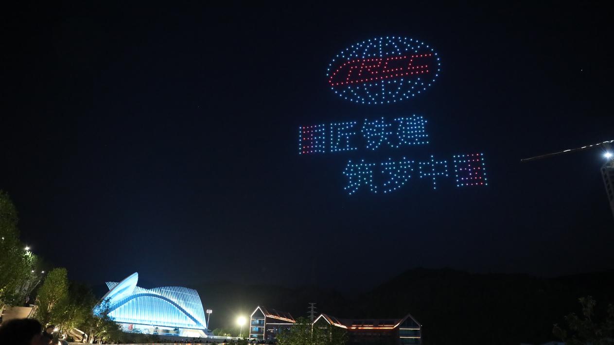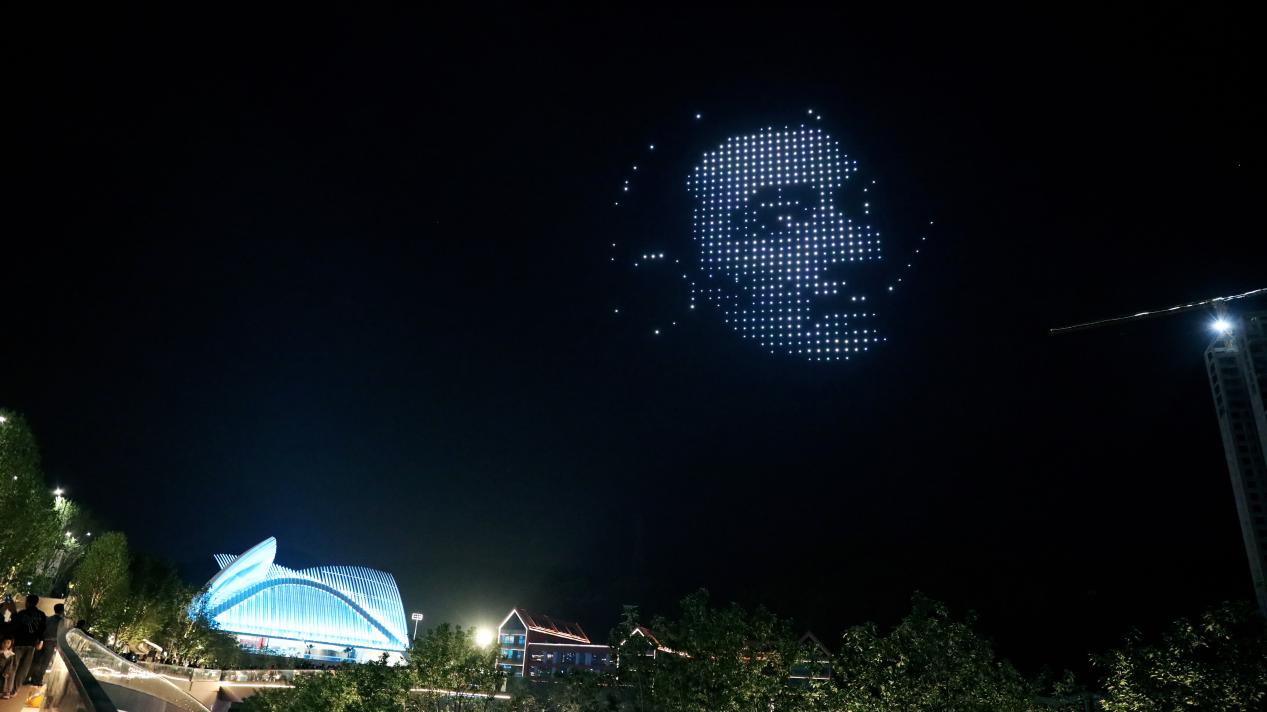 在贵阳国际时尚发布中心旁边的贵阳市南明区建华小学操场,千架无人机列队就绪。晚上8点整,在工作人员的操控下,它们有序地升入空中,组合成各种色彩的图案和文字。达利软表和头像、时尚发布中心、贵阳国际马术中心等元素一一展现。