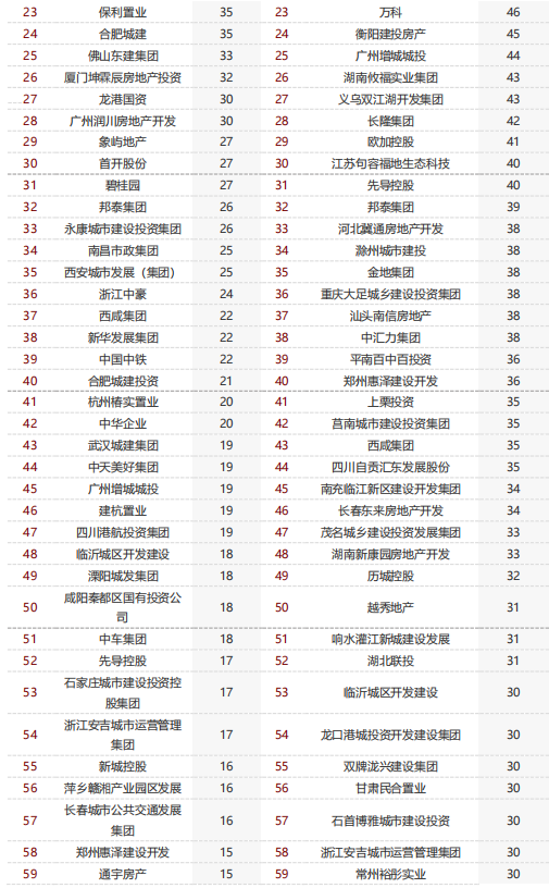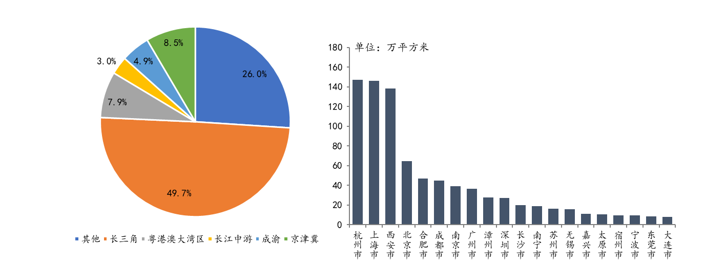 表:2023年1-4月50家代表房企重点拿地面积城市、区域分布情况