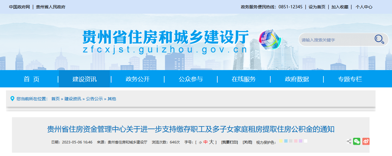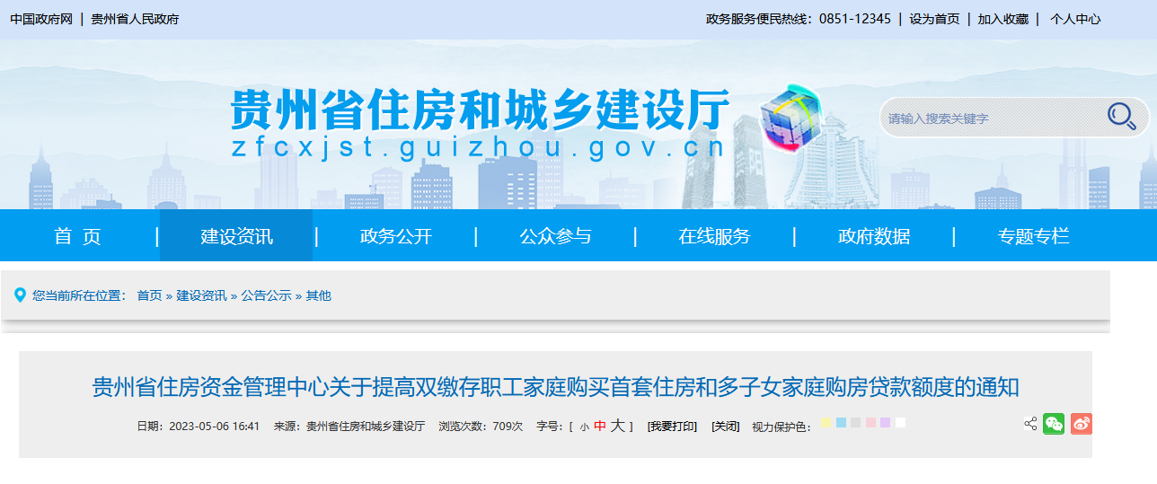 5月6日,贵州省住房和城乡建设厅发布《贵州省住房资金管理中心关于进一步支持缴存职工及多子女家庭租房提取住房公积金的通知》和《贵州省住房资金管理中心关于提高双缴存职工家庭购买首套住房和多子女家庭购房贷款额度的通知》两则通知。