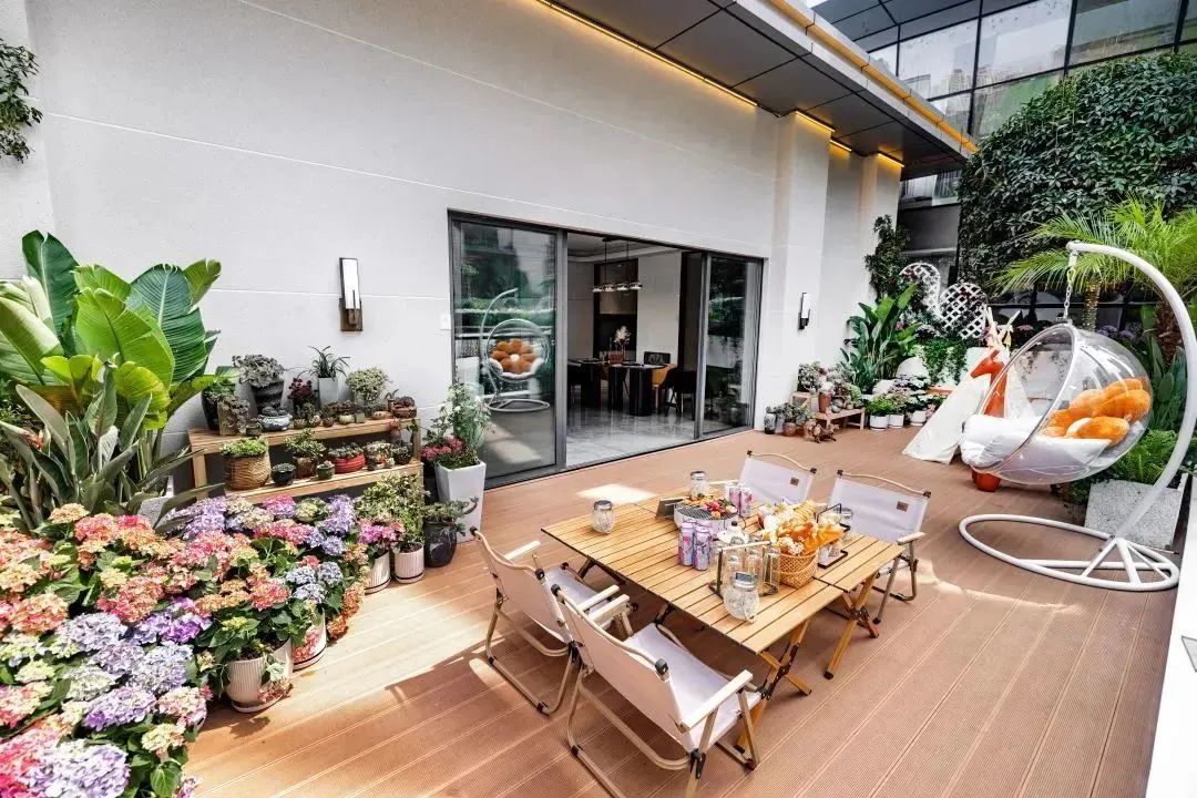 摆上竹椅和茶几,绿植和光影围合一方天然空间,闲暇午后时光,家人闲坐于此,赏景、畅谈,分享生活趣事,尽享岁月悠闲。