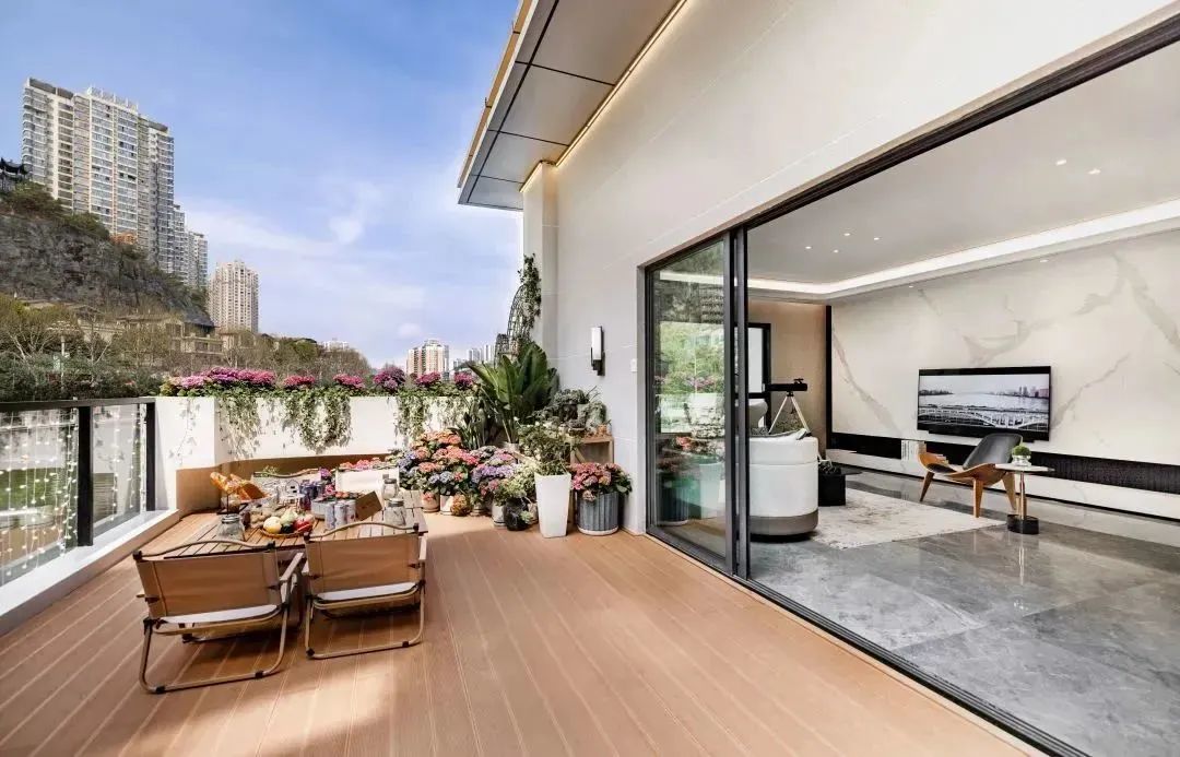 两把躺椅,一瓶红酒,暖风吹拂中双人对饮;夏夜搭建露营帐篷,枕着星河入睡。生活与诗意无间相融,从这一方空中花园开始。