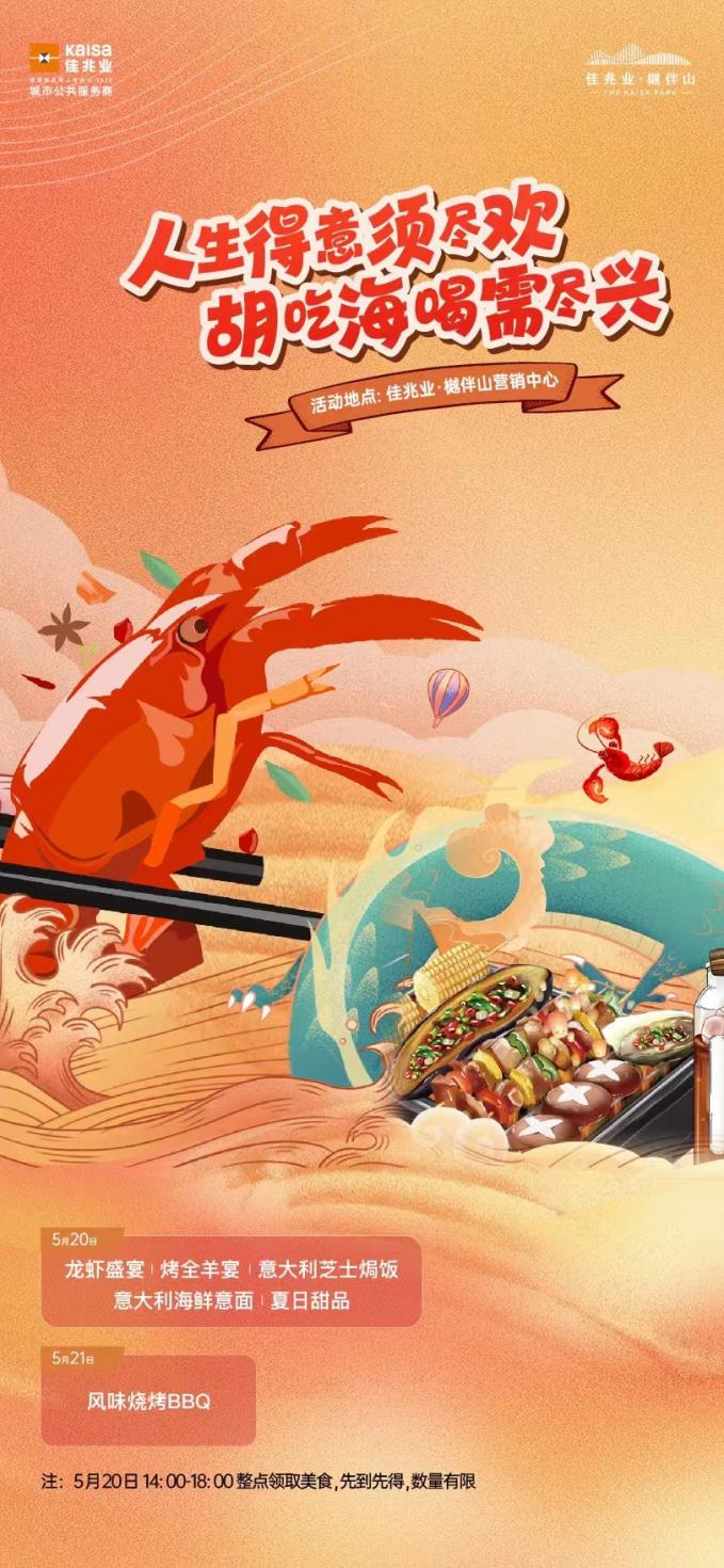 据悉,5月20日当天,在佳兆业樾伴山营销中心,将推出龙虾盛宴烤全羊宴。此外,现场还有意大利芝士饭、意大利海鲜意面及夏日甜品。