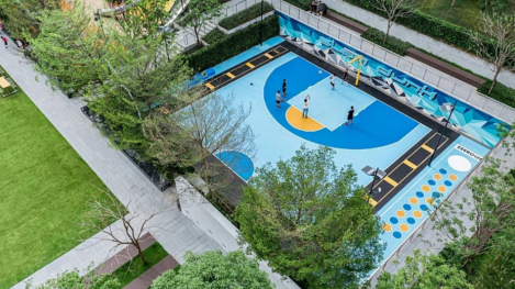 在斑驳的晨光中醒来,在鸟儿婉转动听的歌声里,伴着园林盛景慢跑,感受大自然无私的馈赠。下班之后,卸下一天的疲惫,偶尔约上三两好友,在篮球场来场酣畅淋漓的对决,于自然环伺的运动场,尽情绽放年轻人的青春活力,回归内心的世外桃源。