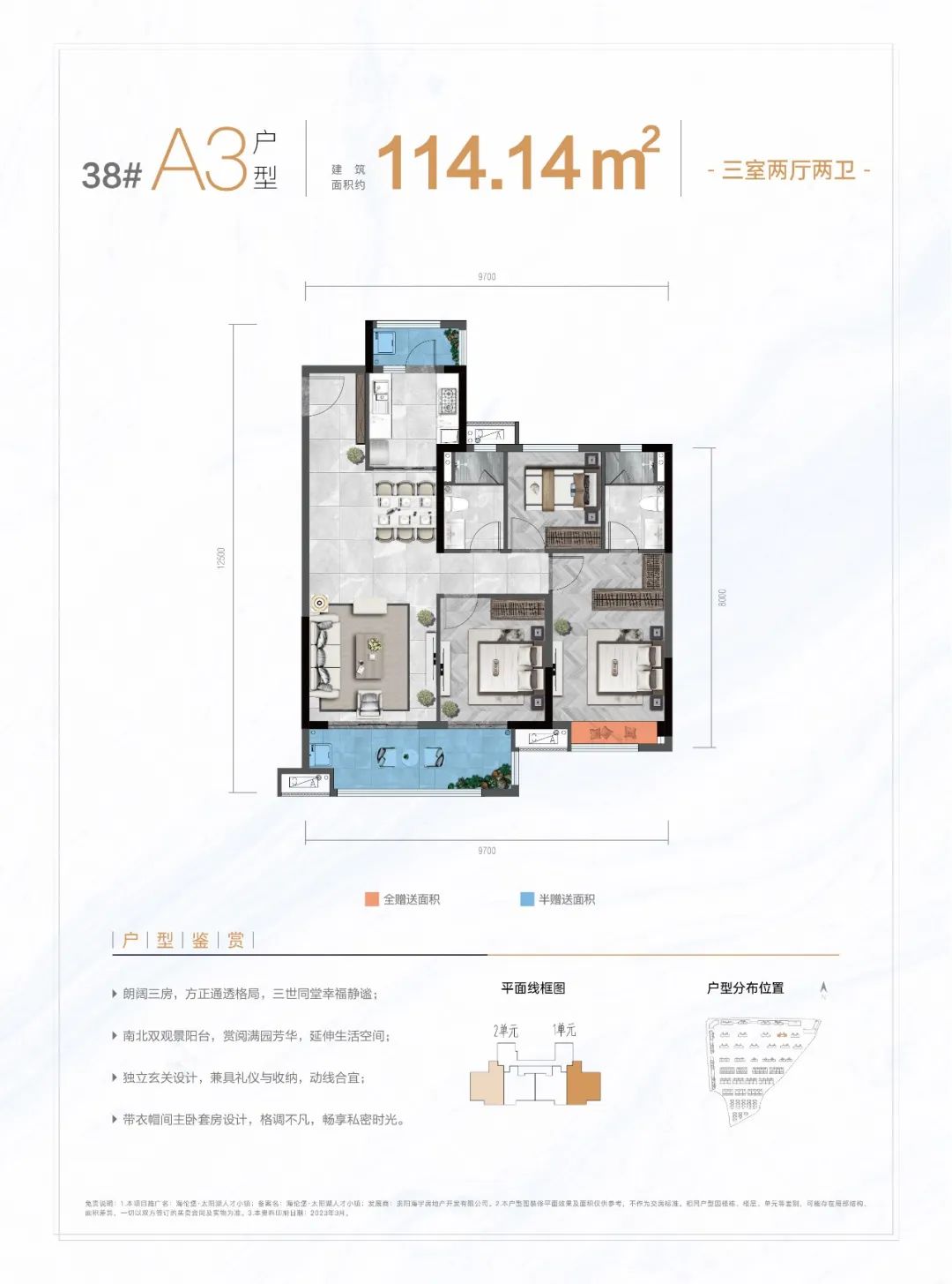 38栋新品热售中,除了约94㎡的爆款小户型,建面约114㎡的方正三居室,空间布局也是恰到好处,当下更有多重置业豪礼&厚惠。