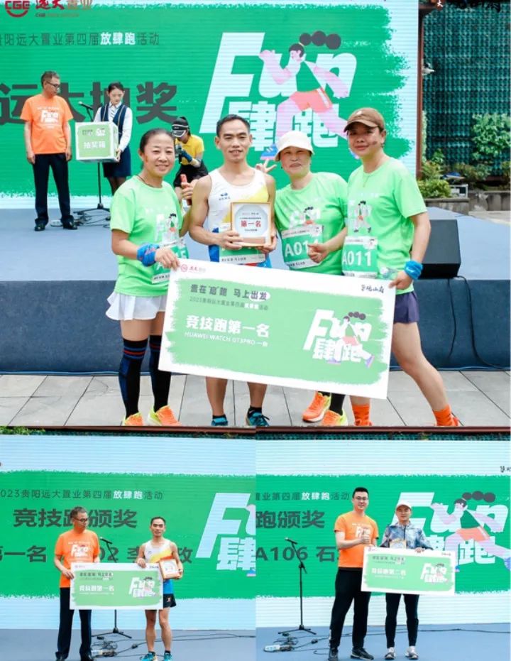 竞技跑第1-3名的比赛成绩分别为:35分38秒、35分39秒、36分23秒、自由跑也有精美的礼品兑换,随后大家一起到远大观山府城市展厅举行颁奖仪式。