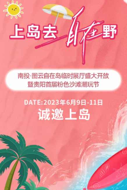 6月9日-11日,南投图云自在岛临时展厅盛大开放暨贵阳首届粉色沙滩潮玩节启幕。