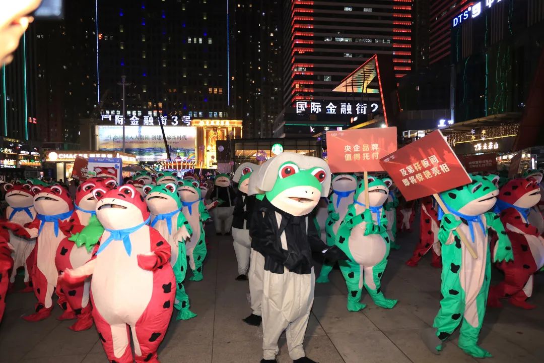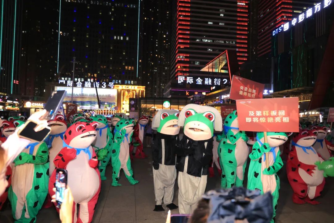 动感的音乐节奏、热力十足的舞蹈,网红蛙热舞快闪全城出击,吸引了众多路人强势围观和参与。