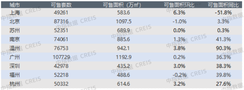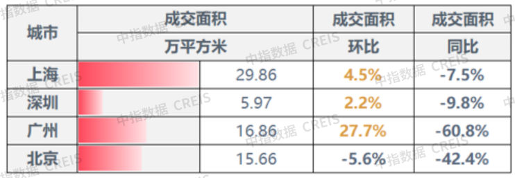 一线城市:整体成交面积环比略升6.5%,广州涨幅最大