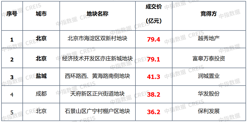 宅地总价TOP5:榜单总额环比走高,北京海淀区宅地领衔