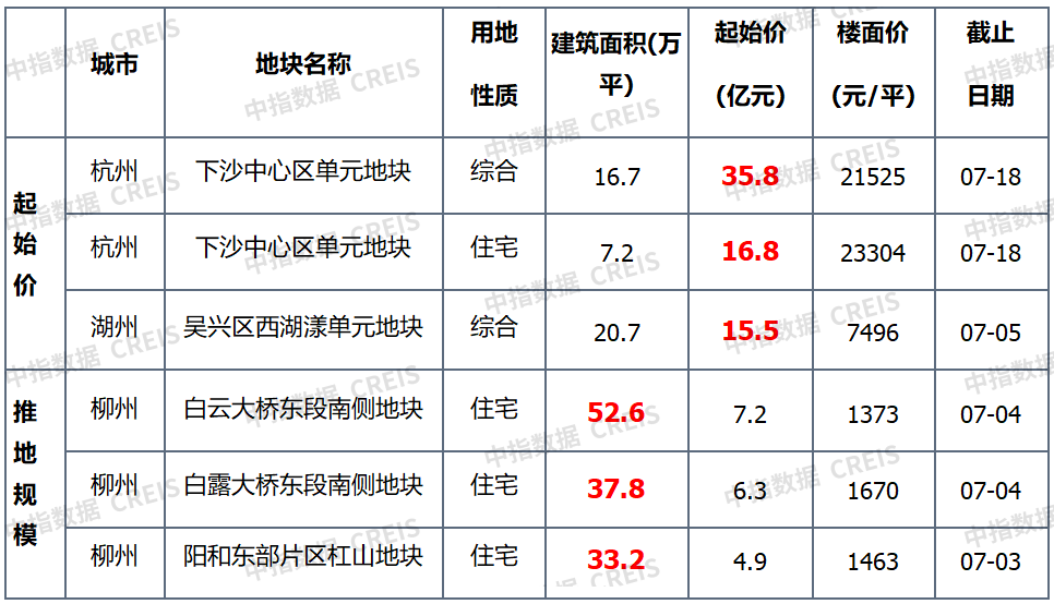 本周,杭州公告挂牌7宗宅地,总起始价逾104亿元。柳州新推15宗宅地,总规划建筑体量近221万平。