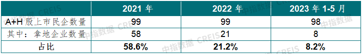 上市民营房企投资拿地的企业数量严重萎缩。2021年-2023年1-5月,上市民营房企拿地企业数量逐年大幅减少,从58家减少到当前的8家,为滨江集团、龙湖集团、碧桂园、新城控股、朗诗、新湖中宝、建业、富力。