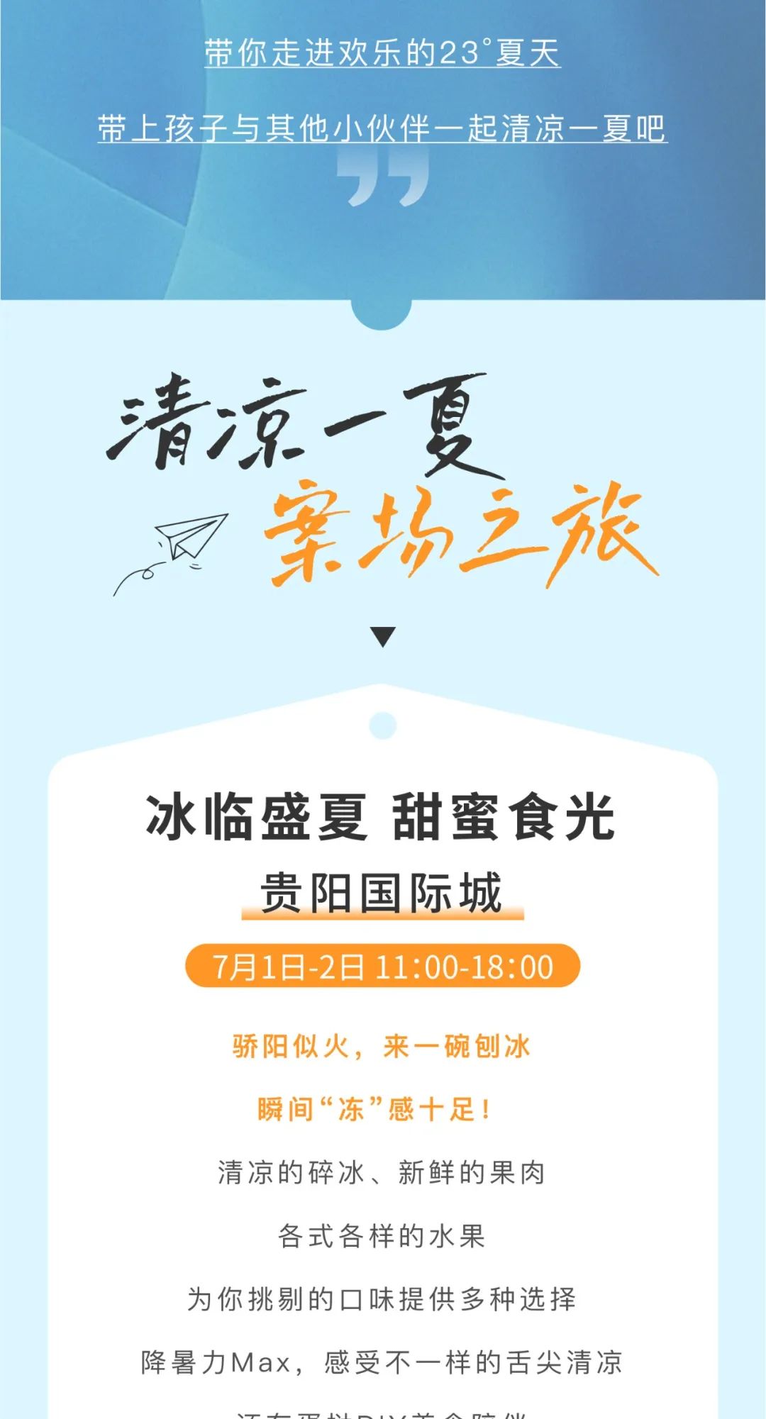 近日,中国铁建地产贵州公司对外发布一系列活动预告,带你走进欢乐的23°夏天,清凉一夏。