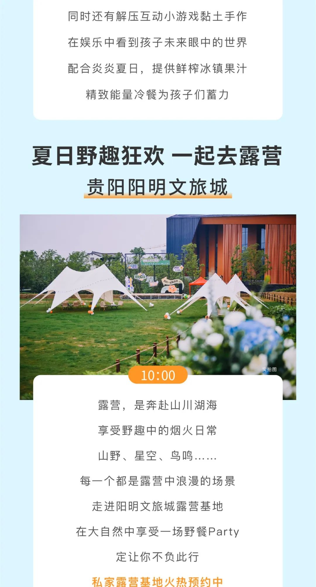10:00,露营,是奔赴山川湖海,享受野趣中的烟火日常,山野、星空、鸟鸣……每一个都是露营中浪漫的场景。走进阳明文旅城露营基地,在大自然中享受一场野餐Party,定让你不负此行,私家露营基地火热预约中。预约电话:13027883755,预约时间:早上10:00后,到访还可以参与抽奖。