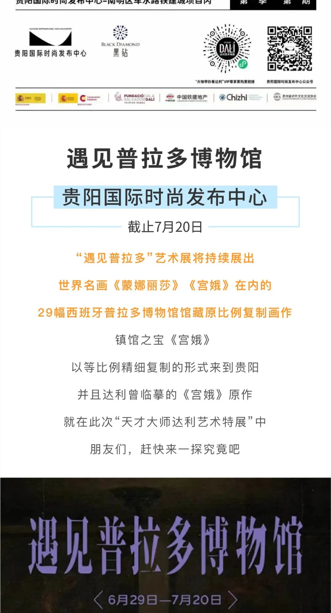 截止7月20日,“遇见普拉多”艺术展将持续展出,世界名画《蒙娜丽莎》《宫娥》在内的29幅西班牙普拉多博物馆馆藏原比例复制画作,镇馆之宝《宫娥》以等比例精细复制的形式来到贵阳,并且达利曾临摹的《宫娥》原作,就在此次“天才大师达利艺术特展”中,朋友们,赶快来一探究竟。