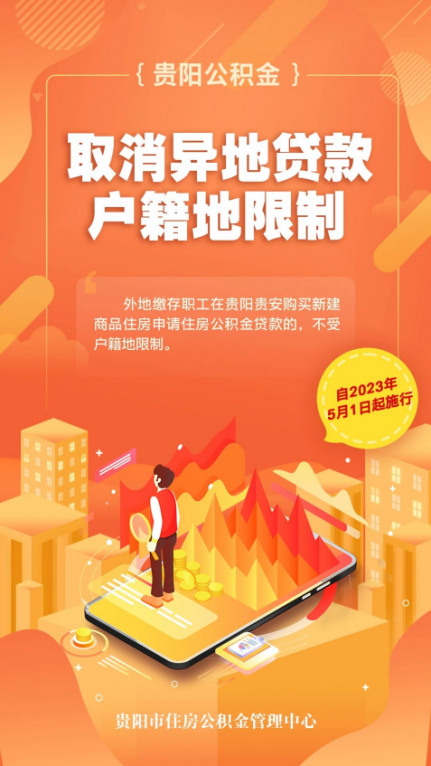 取消异地贷款户籍地限制--外地缴存职工在贵阳贵安购买新建住房申请公积金贷款的,不受户籍地限制。这一重磅措施,彻底解决了外地缴存职工在贵阳贵安购房户籍“硬门槛”问题,将有利于进一步提高贵阳贵安异地贷款的效率,提振贵阳贵安外缴存者的购房热情。同时也为外地缴存者购房省下不少成本,突破个人的公积金贷款地域限制。房子是工作和生活的承载,让努力奋斗的每一个人都能轻松安家,让贵阳贵安成为第二故乡不再遥远。