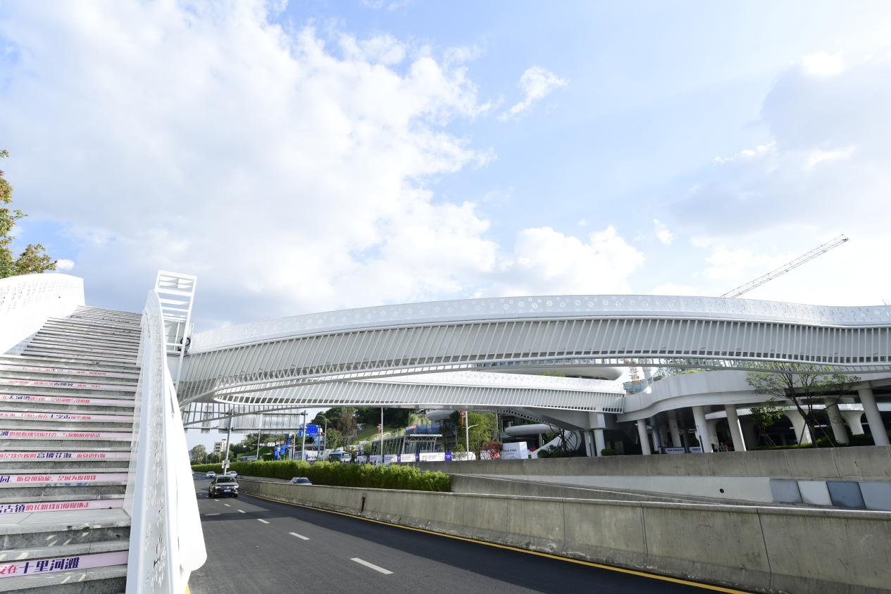 天空之桥使地铁3号线、花溪大道与桥两岸的生活氛围、生态风景紧密结合起来,为中铁·阅花溪的业主及周边市民、游客的步行来往、观景休闲和出行提供了巨大便利。
