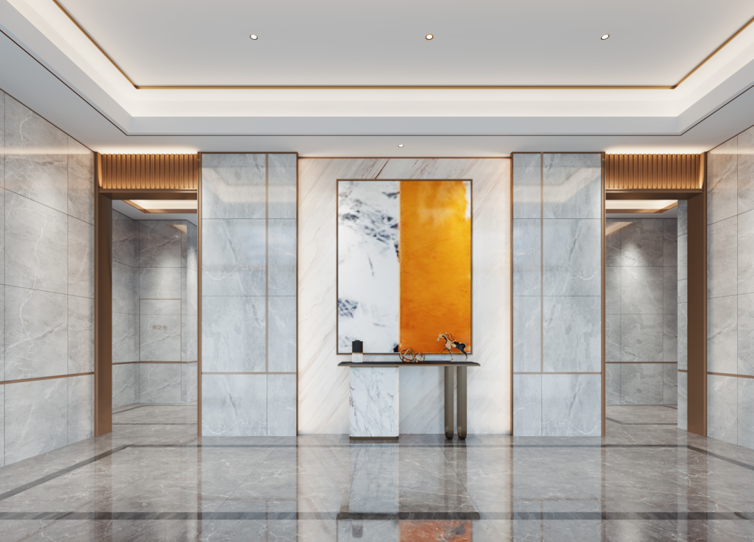 作为入门前的第一道风景,电梯厅与门厅相呼应,呈现礼仪序列感,赋予居者尊贵的归家体验,营造出一处不受打扰的从容空间,更是圈出了居者的私属领地,更加契合现代精英阶层对于家的感悟和追求。