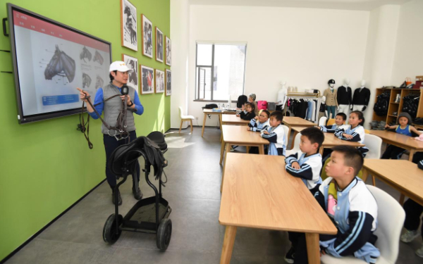 (马术教练为南明区建华实验小学的学生们讲授马术理论课)