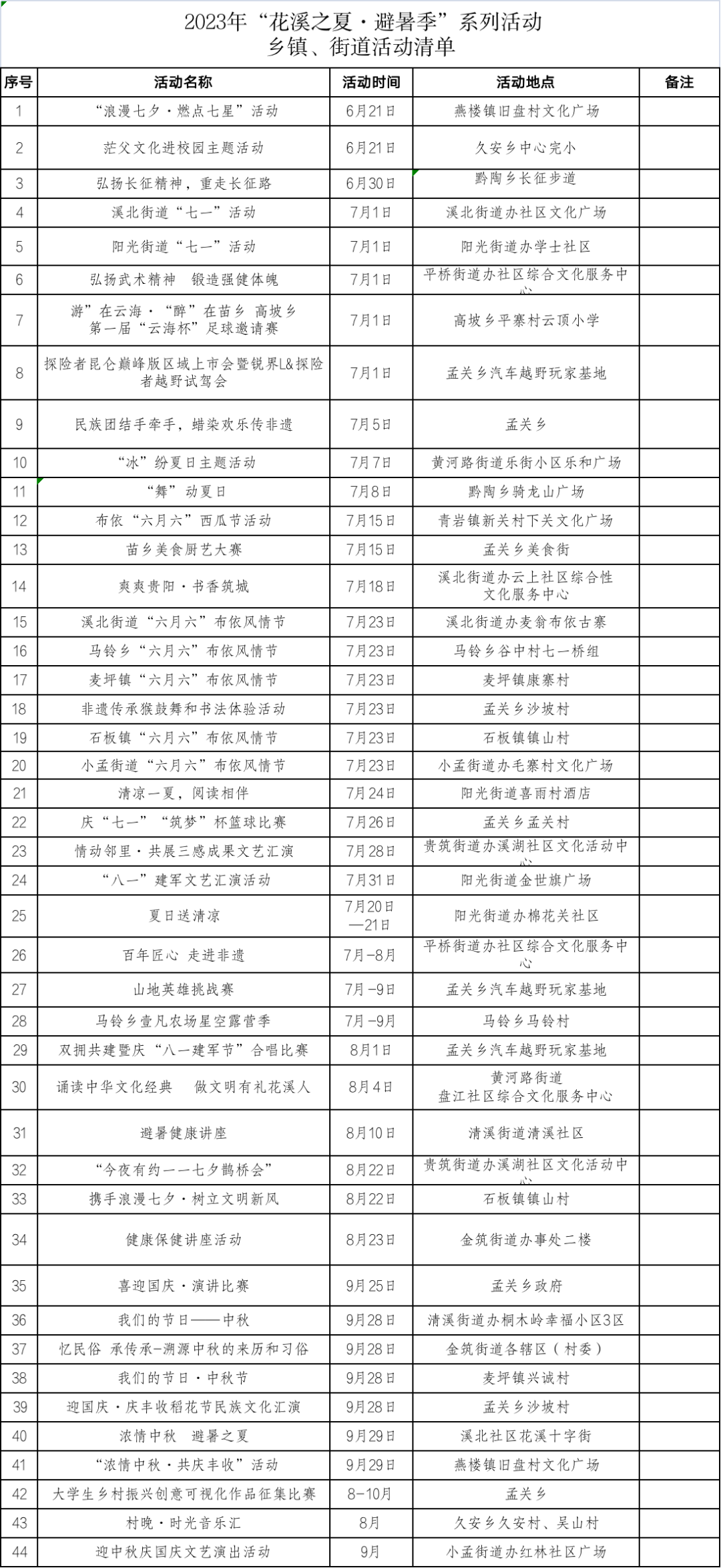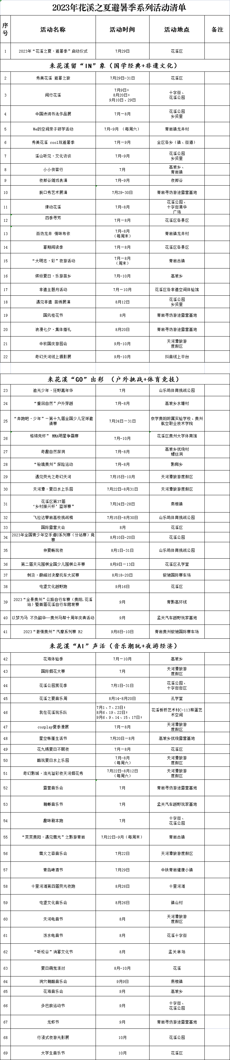 (2023年花溪之夏避暑季系列活动清单)