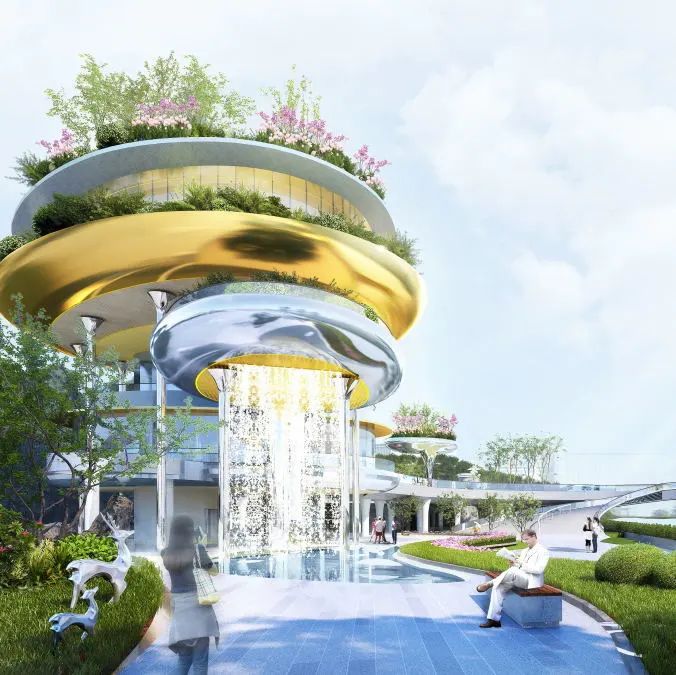 「悦己」的产品打造以古巴比伦空中花园为灵感,将逐层交错的露台空间镶嵌于居住生活场景中,再造一座垂直于城市之上的空中花园。