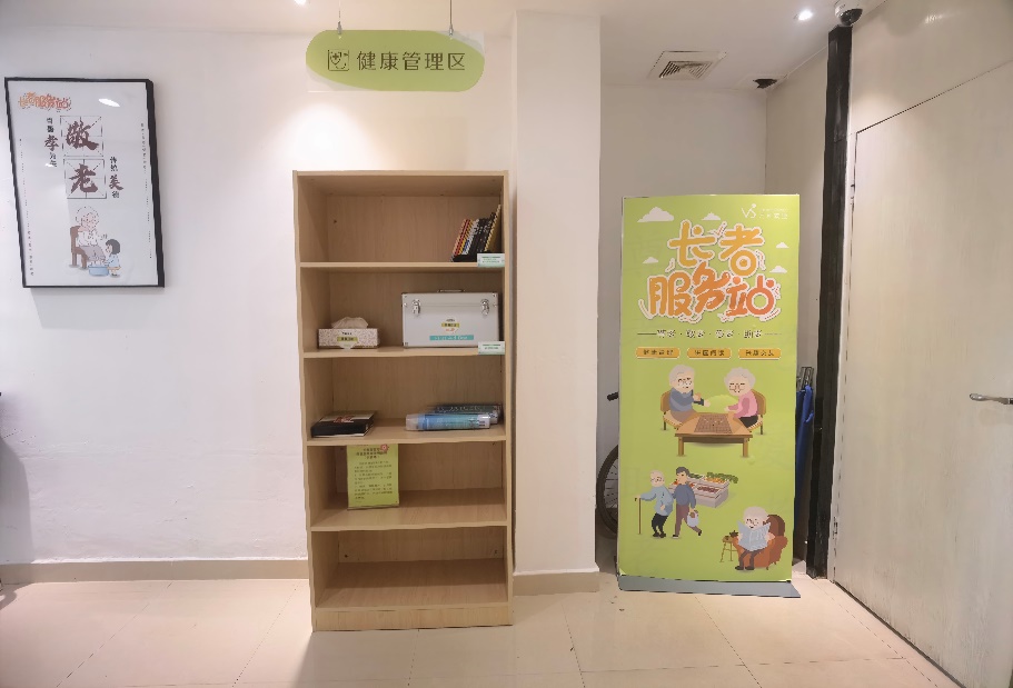 长者服务站建立以来,每天上午十点以后,小区的老年业主可以聚在这里,下棋、唱歌、阅读书籍,丰富日常生活。服务站还贴心配备了血压仪、血氧仪、药箱、轮椅、便携式氧气呼吸器等医疗设备,业主可根据自身需要随时使用。