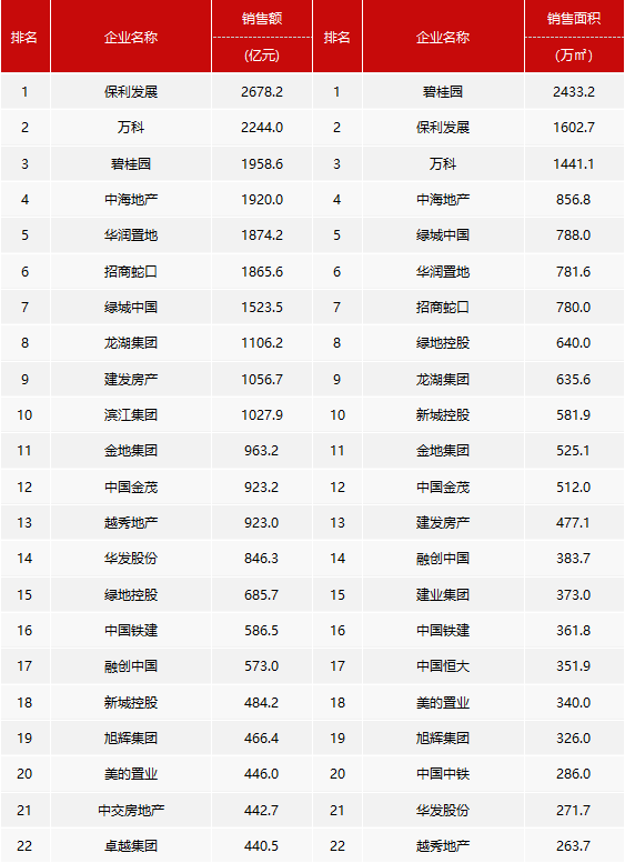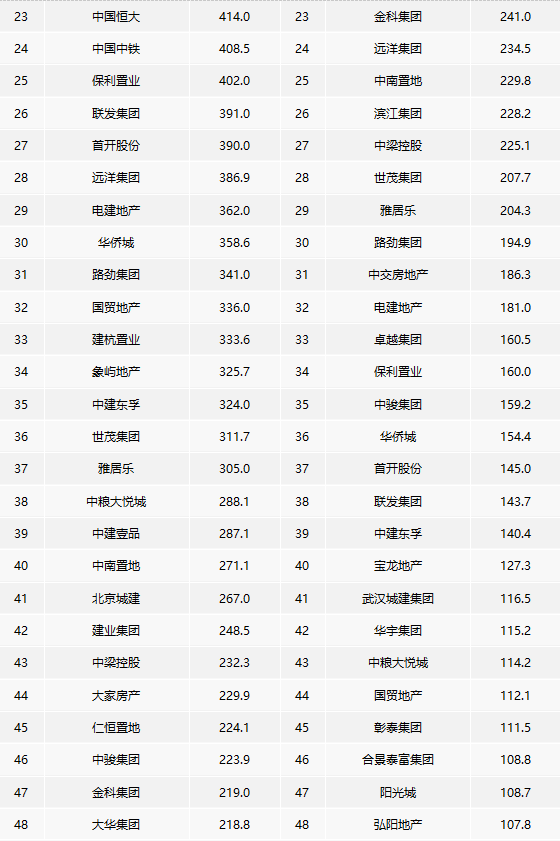 业绩:TOP100房企销售总额为39944.0亿元 同比下降4.6%