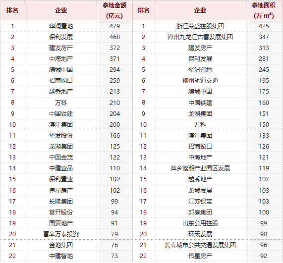 1-7月全国房企权益拿地金额与面积TOP100