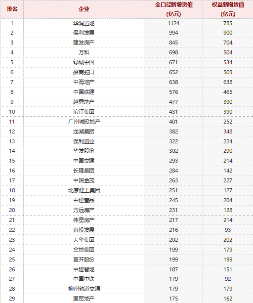 1-7月全国房企新增货值TOP100