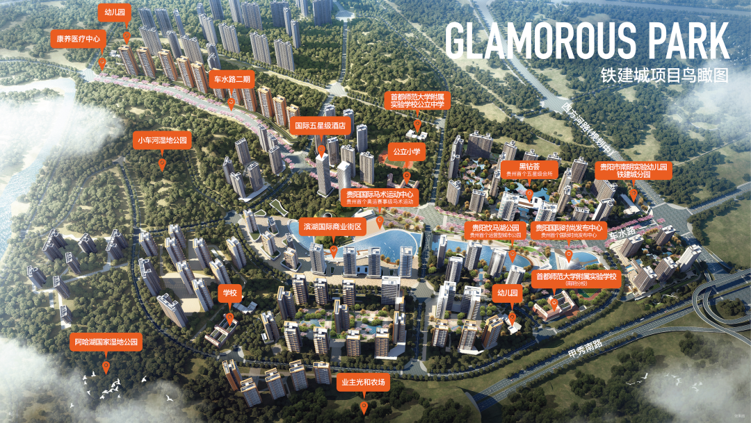 贵阳铁建城围绕阿哈湖城市绿核、都市客厅的战略构想,采取“配套先行、运营先行”的理念,通过精细化开发,将建筑风景化、配套产业化、社区景区化、生活度假化,用高阶产品填充高阶生活的未来体验。