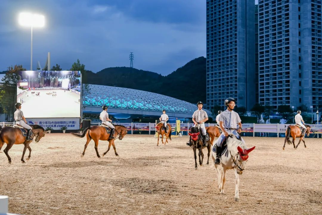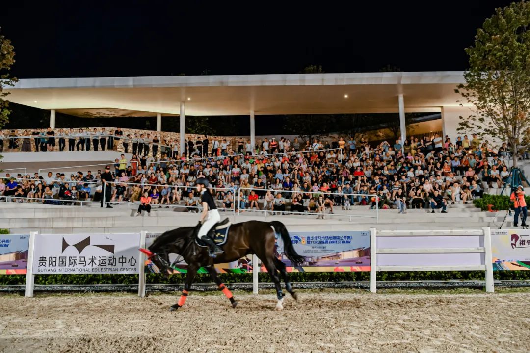 8月5日晚,2023铁建杯青少年马术场地障碍公开赛(贵阳)暨TCR训练赛迎来尖端对决。观众席和二层看台上坐满了观众,很多个家庭在贵阳国际马术中心度过一个难忘的夏夜。