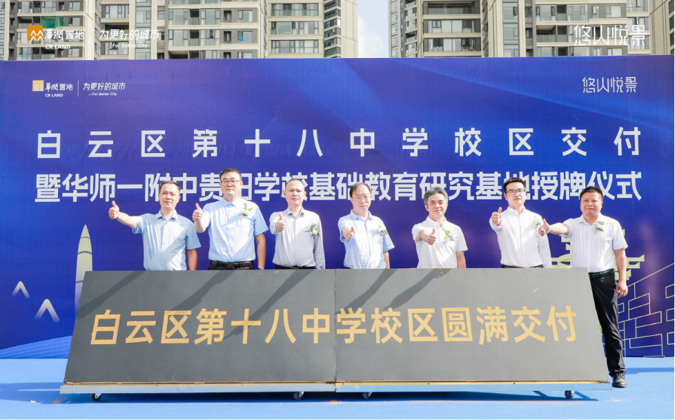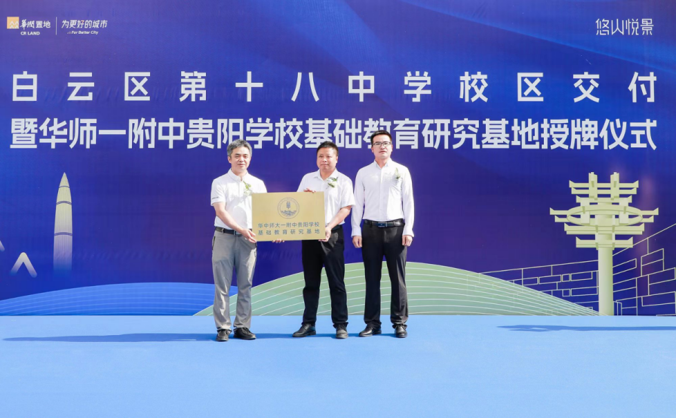 8月6日,贵阳市白云区第十八中学校区交付暨华师一附中贵阳学校基础教育研究基地授牌仪式隆重举行。白云区教育局副局长付红献、华润置地贵阳公司总经理廖志恒、华中师大一附中贵阳学校理事长张振宇、白云区第十八中学校长时江等出席,共同见证白云区教育界历史性时刻。