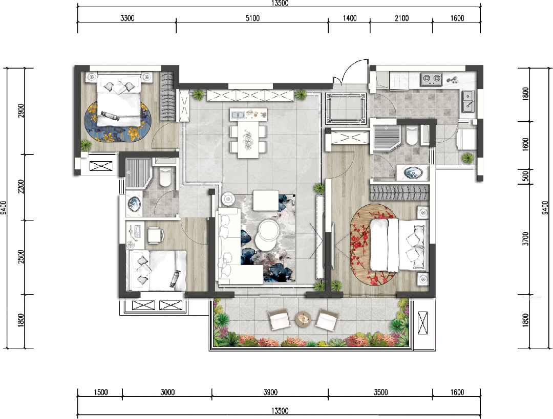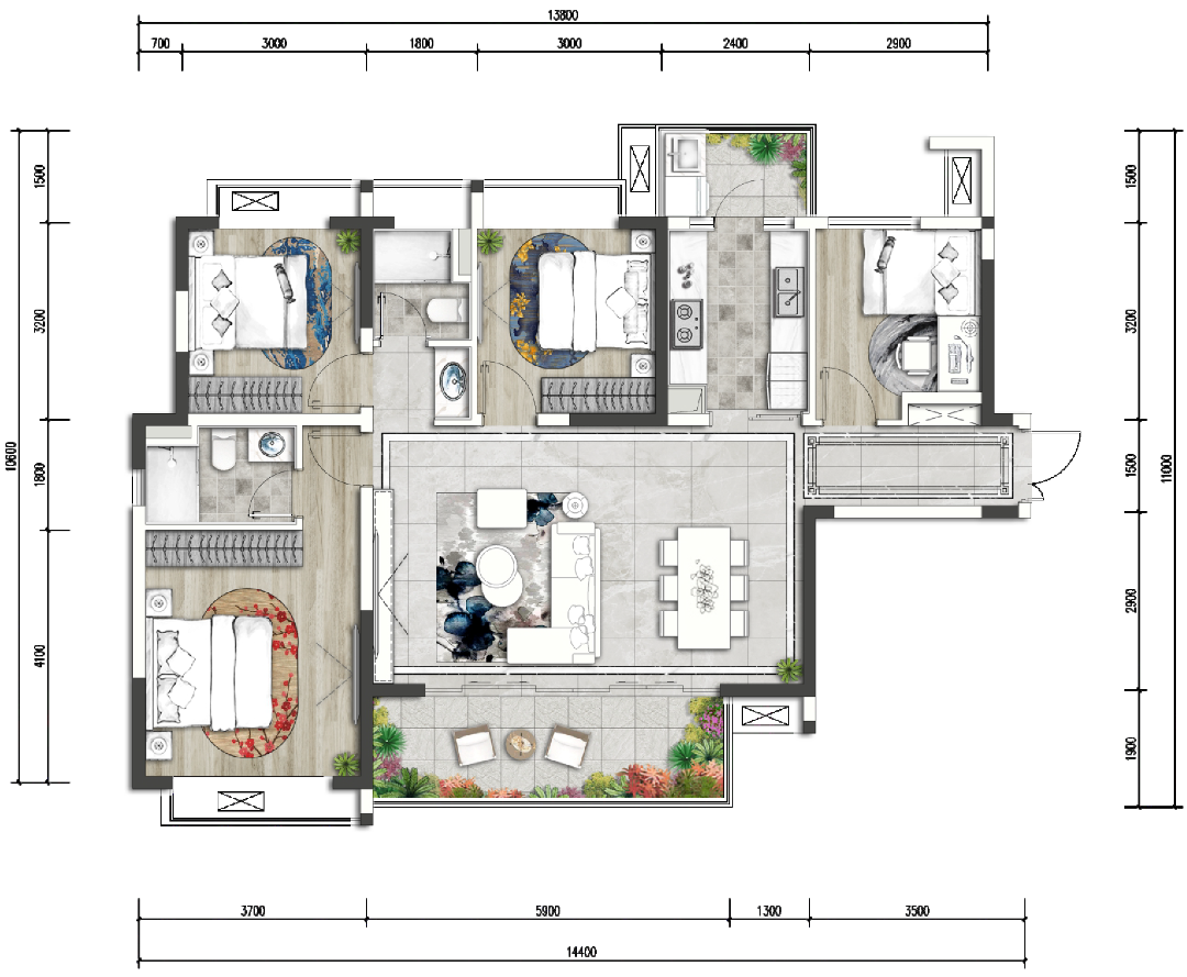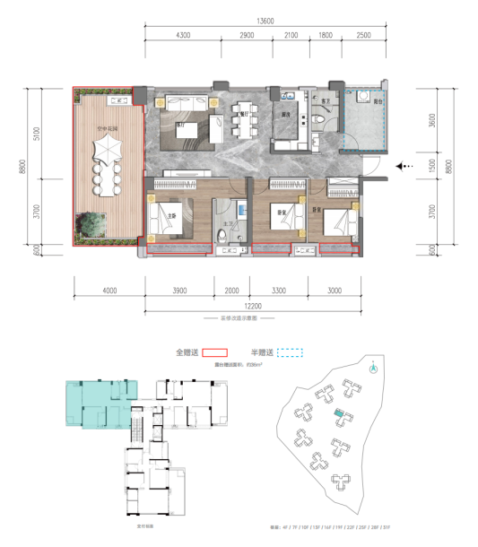 【语墅】组团赠送最大约42㎡的空中花园,以约9m的挑高空间,打造可以种树的房子。同时,以户户双阳台设计,用更大的尺度,予业主发现、创造更多的生活可能。