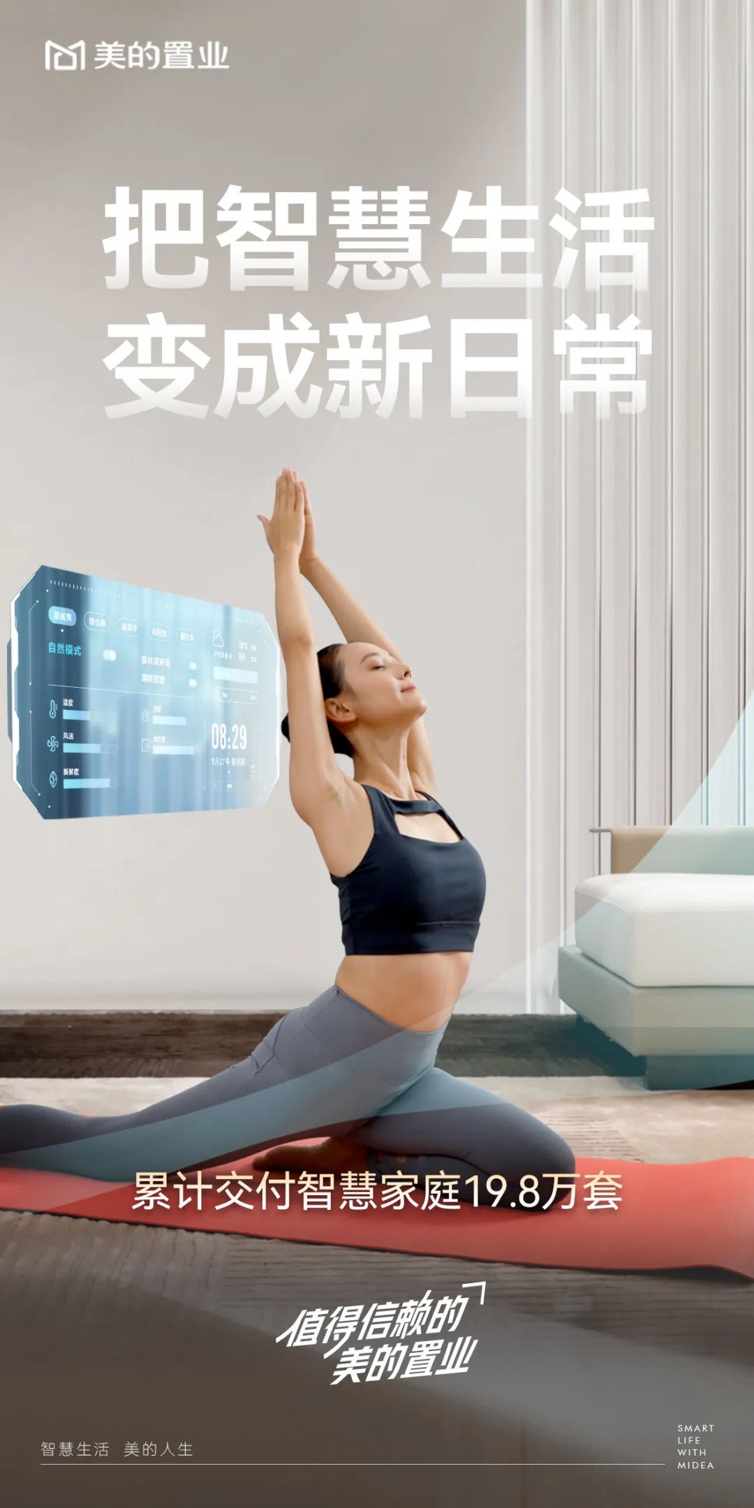 美的置业2015年先发智慧地产战略,迄今累计交付智慧家庭19.8万套,近年推出空间智能全场景解决方案,以及REMAC HOME OS 1.0系统,统领安防、空气、用水、光影、低碳管家,加持一体化售后保障,推动普及全屋智能。